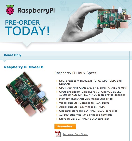 Le fameux Raspberry Pi, le plus petit ordinateur du monde, est, du moins était, disponible à la vente ce matin mais des milliers de personnes ont sauté leur ordinateur et fait exploser le centre de Pré-commande. Résultat, rupture de stock et la on ne connait pas encore la prochaine date de livraison dans les 2 magasins en ligne à vendre le Raspberry Pi.