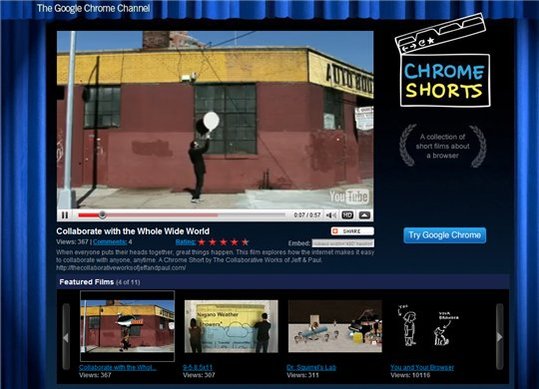 Pas moins de 11 films promotionnels sur Google Chrome sont présents dans la salle de cinéma Youtube dédié spécialement au navigateur Google.