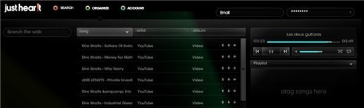 Just Hear it est donc un moteur de recherche de musique en ligne. Après avoir entré votre recherche, les morceaux s'affichent et vous pouvez en sélectionner et les ajouter à la playlist.