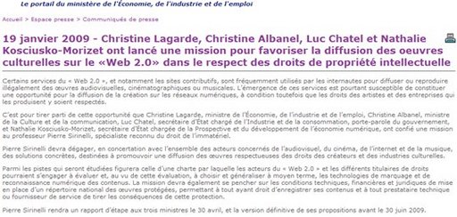 Christine Lagarde, ministre de l'Économie, de l'industrie et de l'emploi, Christine Albanel, ministre de la Culture et de la communication, Luc Chatel, secrétaire d'État chargé de l'Industrie et de la consommation, porte-parole du gouvernement, et Nathalie Kosciusko-Morizet, secrétaire d'État chargée de la Prospective et du développement de l'économie numérique, ont confié une mission au professeur Pierre Sirinelli .