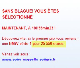 Moi je lis :" Découvrez vite si vous avez gagné le droit d'acheter une BMW série 1 pour une valeur de 25 500 Euros "