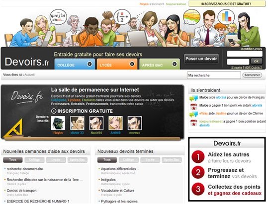 Devoirs.fr fonctionne sous le principe suivant ( repris depuis le communiqué de presse )