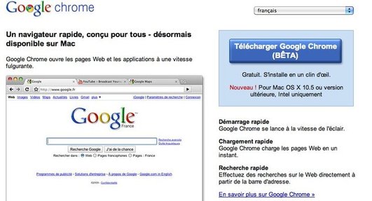 Google a annoncé la sortie officielle en Beta de Google Chrome pour MAC.