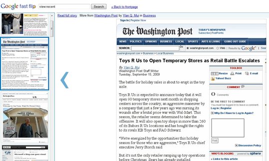 L'enjeu de Google Fast Flip est la vitesse d'affichage de chaque page qui est effectivement très rapide.