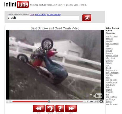 Pour les longues soirées d'hiver, devant un bel et grand écran, vous démarrez Infinitube, vous tapez le mot clé que vous souhaitez, et c'est parti pour de longues heures de vidéos :)