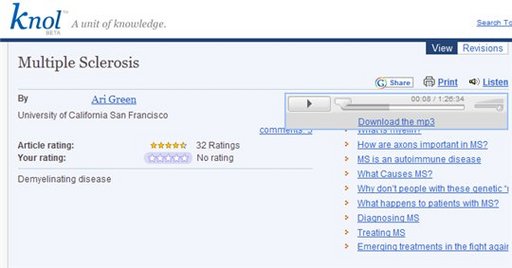 Grâce à la technique du Text To Speech, vous allez pouvoir très bientôt écouter les articles écrits sur Knol et même les télécharger en MP3 pour les coller sur votre iPod :).