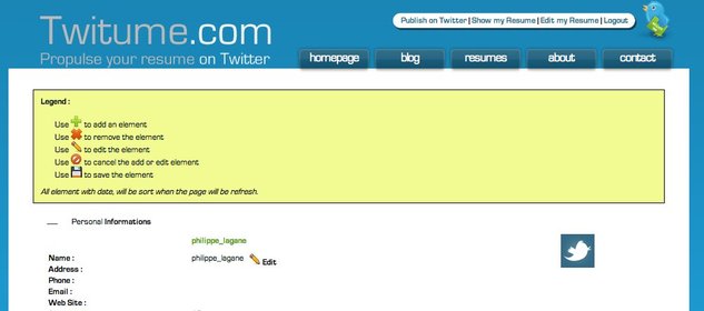 Twitume est une application qui permet de construire et partager son CV directement via Twitter.
