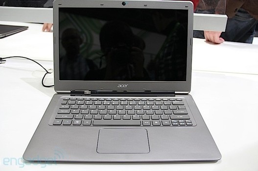 Epais de 13mm, il pèse 1.4 kg et dispose d'une coque en aluminium et magnésium cela ne vous dis rien ? Oui un MacBook Air, on peut presque se tromper mais cela n'est pas innocent de la part d'Acer puisque cet ultrabook sera proposé en France à partir de ce mois-ci au prix de 799€ alors que le premier MacBook Air débute à 949€.