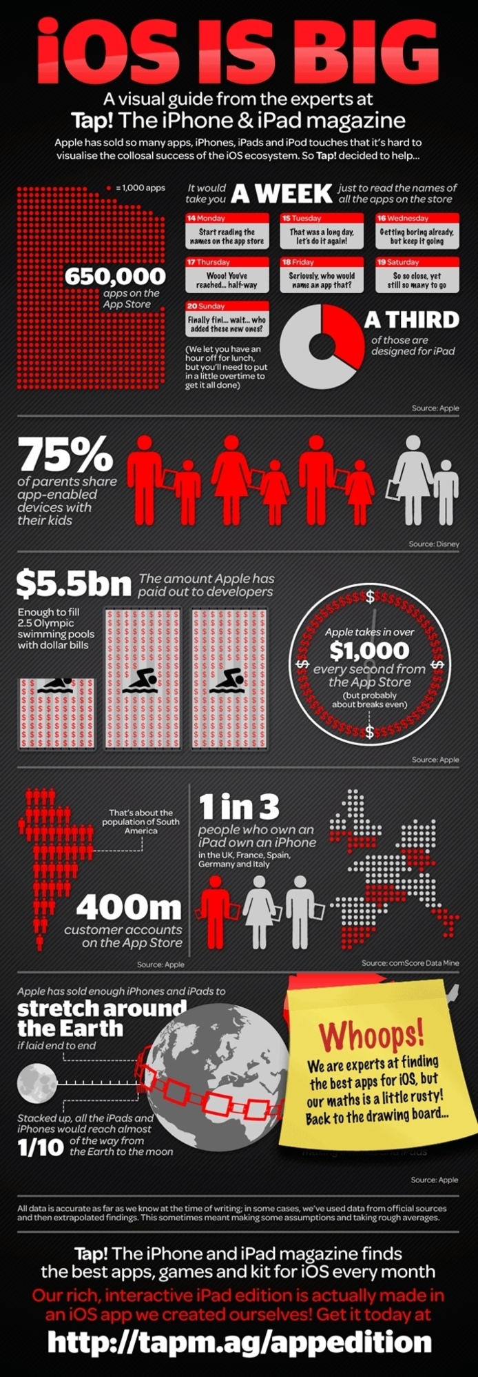 L'infographie ci-dessous, montre à quel point l'App Store est énorme, ils se sont même amusés à calculer qu'il faudrait 1 semaine entière pour compter toutes les applications.