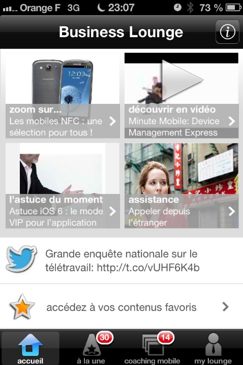 L'application Orange Business lounge a donc subit quelques liftings et propose aujourd'hui :