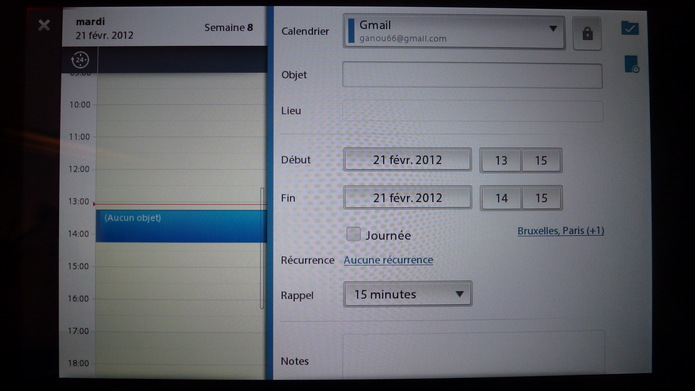 L'agenda quant à lui, se synchronise également parfaitement avec l'agenda Google associé à l'adresse Gmail mais uniquement avec l'agenda principal, donc impossible pour l'instant de synchroniser plusieurs agendas créés à partir de l'agenda principal.