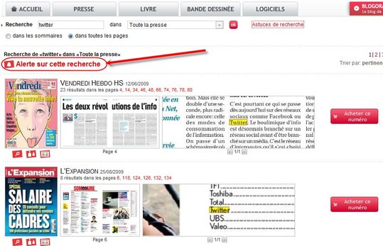 Et comme le montre l'image ci dessus, vous n'avez plus qu'à vous abonner à cette alerte et à chaque fois que ce ou ces mots apparaîtront dans un magazine, vous serez averti.