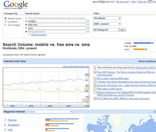 C'est là que Google Insights for Search me parait être un bon outils. Il permet d'effectuer des recherches sur des mots clés à différentes périodes et dans les différents pays du monde.