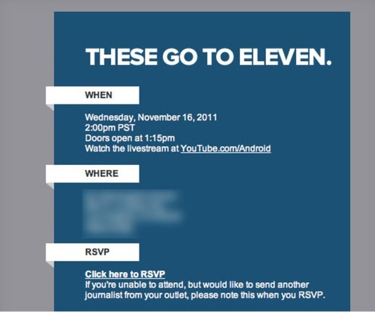 Une conférence Google, sous le nom de " These Go To Eleven " aura lieu le 16 Novembre 2011 à Los Angeles.