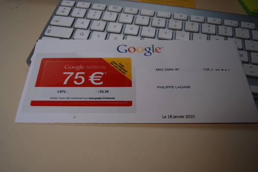 Il s'agit ni plus ni moins qu'un bon pour 75 € d'Adwords gratuits afin que j'annonce sur Google.