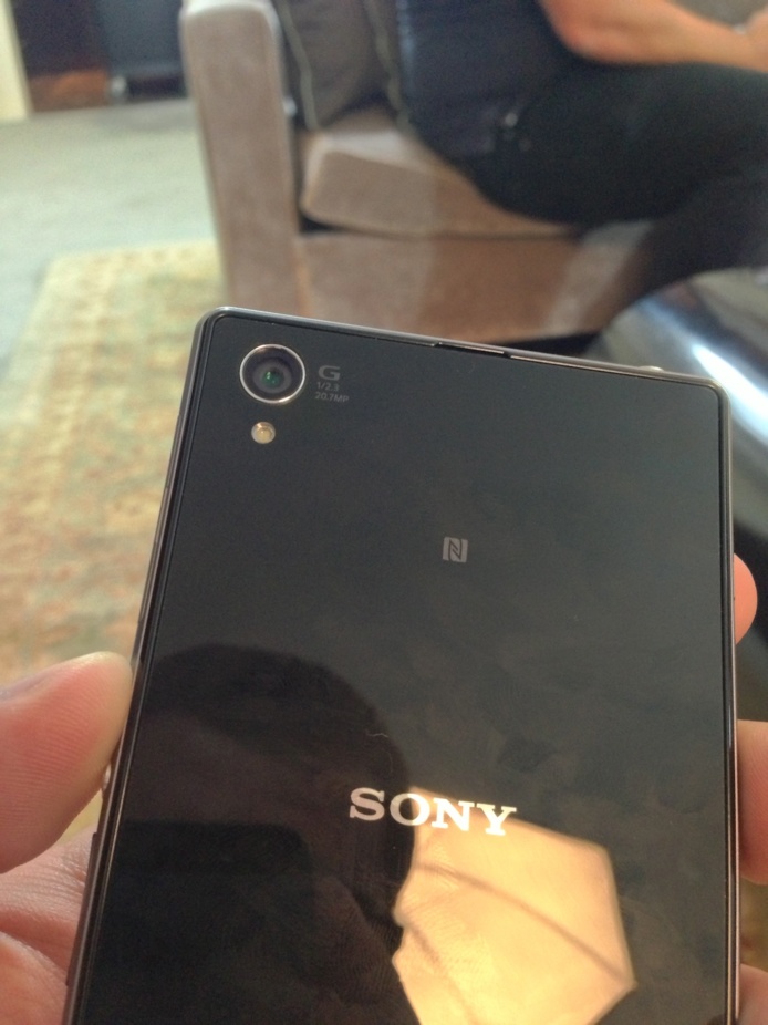 Il est biensur waterproof comme tous les smartphones haut de gamme chez Sony, comme vous pouvez le voir sur son dos il est équipé du NFC. D'ailleurs ce NFC servira aussi à coupler deux objectif photo (Cybershot QX10 et QX 100) sur ce téléphone qui se transformera donc en smartphone photo de folie, le Samsung Galaxy Zoom peut se rhabiller mais ça fera certainement l'objet d'un article un peu plus détaillé.
