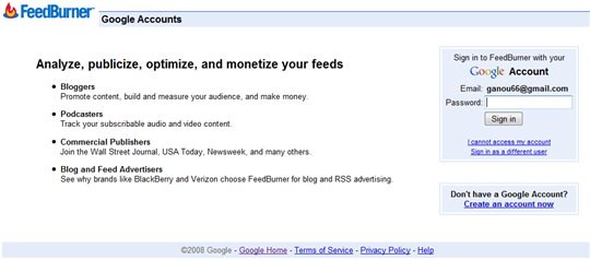 Voilà à quoi devrait ressembler la future Home Page de Feedburner si Google l'intègre complètement dans sa lignée ( donc, on pourra se loguer avec son compte Google )