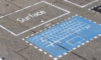 Vous l'aviez peut-être vu hier sur la photo du graffiti du trottoir parisien, en dehors du nom de la tablette "Surface", apparaissait également la mention de l'onomatopée "clic". Tout porte à croire que ce son sera au centre de la campagne de publicité de Microsoft.