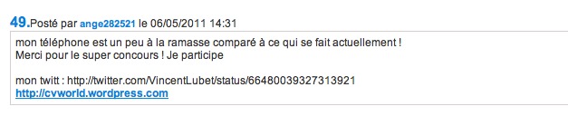Vous avez été très nombreux à participer et ReTweeter le concours et je vous en remercie. Pour le tirage au sort, fait sur Random, j'ai pris l'ensemble des commentaires, puis j'ai ajouté tous les retweet et le numéro vainqueur est le commentaire 49.