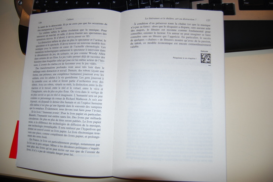 A la fin de chaque écrit d'une personne co-auteur, on trouve un flashcode, appelé aussi Semacode, qui permet, à tous ceux qui sont équipés d'un lecteur de flashcode sur leur mobile, d'aller directement sur une page web ou ils pourront écouter une musique, voir une vidéo, une interview, un texte, etc ... associé au morceau de lecture qu'ils viennent de finir.