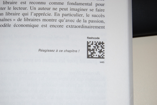 Il suffira donc au lecteur de lire ce flashcode ou bien d'envoyer un SMS avec un code + le numéro de la page en cours ( SMS non surtaxé ) pour recevoir un URL.