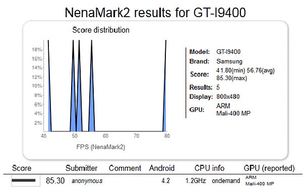 Il semble de bonne augure que cela se passe de la même façon pour le Galaxy S4 et il se pourrait bien que ce nouveau futur mobile Samsung ai fait sa première apparition dans un Benchmark, celui de NenaMark2.