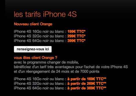 Après SFR hier, Orange a donc lancé les pré-commandes de l'iPhone 4S en affichant ses tarifs.