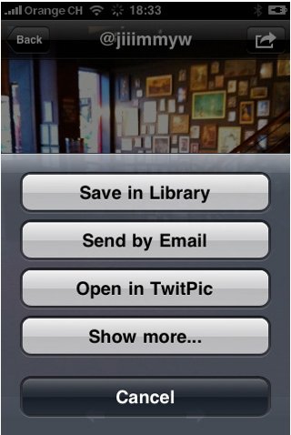 Les photos vues sur TweetyShow pourront être enregistrées sur votre iPhone et même plus