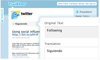 Twitter est aujourd'hui disponible en anglais et en japonnais. Depuis quelques heures, Twitter a invité un certain nombre de personnes à aider à la traduction de Twitter dans différents langages : français, italien, espagnol et allemand.