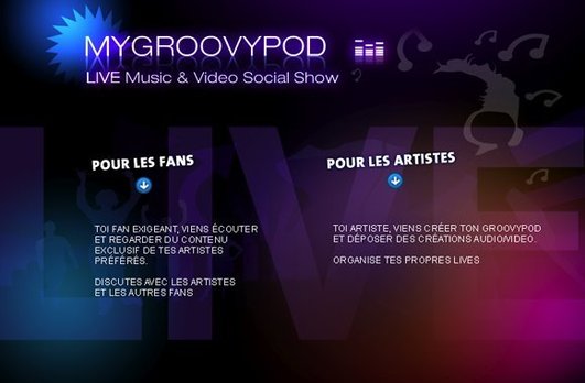 C'est ce que propose ce site Internet MyGroovyPod. Le concept de ce site Internet est simple, diffuser sur le net des concerts en "live" (en direct) plein de style de musiques différentes, totalement gratuit.