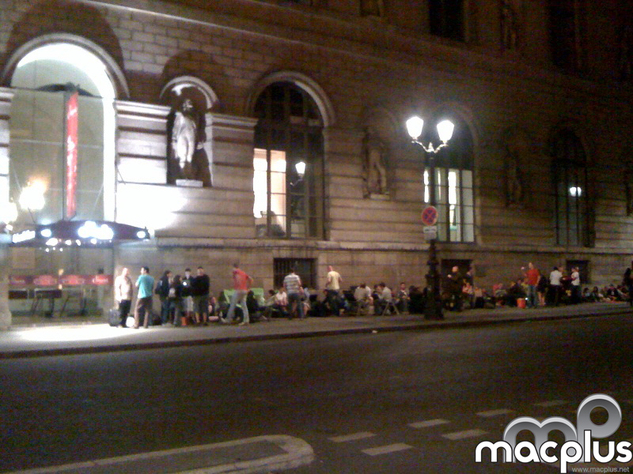 Du coté de l'Apple Store, la file est moins longue mais ceux là sont partis pour attendre toute la nuit afin de pouvoir acheter l'iPhone dès l'ouverture de l'Apple Store du Louvre.