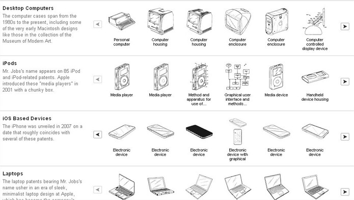 Ces 323 brevets, dont Steve serait propriétaire ou co-propriétaire, le New York Times les a réuni dans un document "interactif" par catégorie et il est consultable ici. Vous pourrez vous ballader dans les brevets et cliquer sur chacun d'entre eux pour en découvrir un peu plus sur ceux ci.