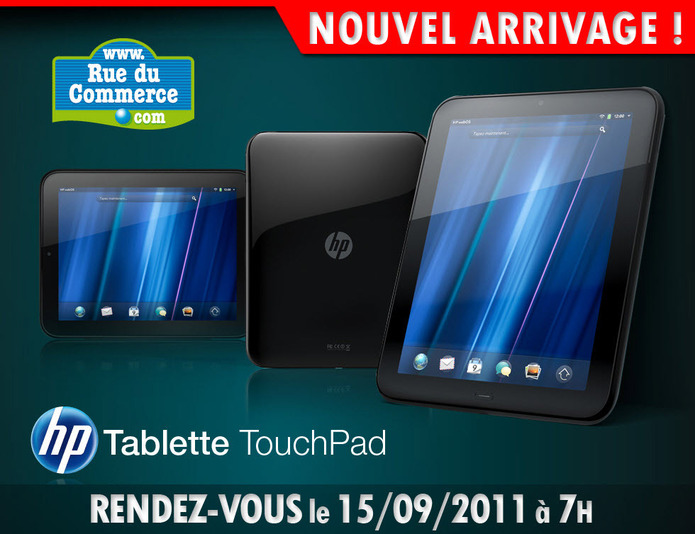 Après la vente flash de 1000 TouchPad de la semaine dernière, qui avait d'ailleurs rencontré un franc succès puisqu'elles s'étaient vendues en 4 minutes, RueDuCommerce réitère l'opération en proposant cette fois-ci 370 tablettes. La vente aura lieu demain, jeudi 15 septembre 2011 à partir de 7h.