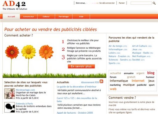 AD42 quant à lui, voulant jouer la transparence complète entre lui, l'annonceur et le blogueur ( ou le site internet ) prend sa commission sur la somme demandée par le blogueur. ( soit 25 % ce qui est un prix bas dans ce marché ). Donc le prix annoncé par le blogueur sera le prix payé par l'annonceur.