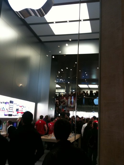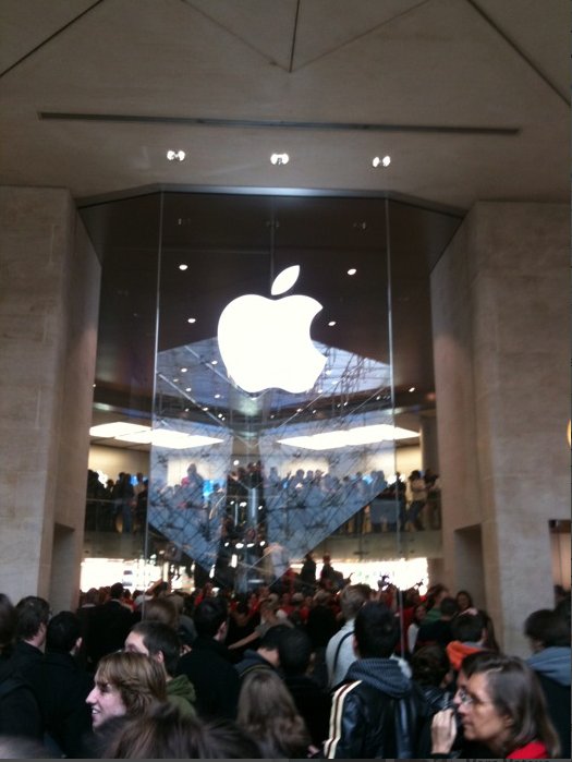 L'Apple Store de Paris vient d'ouvrir ses portes, ce matin à 10h précise et le moins que l'on puisse dire, c'est qu'il y avait du monde devant les portes :)