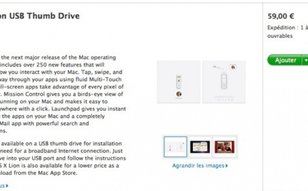 Apple a fait fort avec la sortie de nouvel OS X Lion puisque c'est le premier OS à être vendu dématerialisé mais comme d'habitude cela n'a pas fait pas l'unanimité. Pour remedier à ce "problème", Apple propose désormais une clé d'installation USB vendue 59€. Il faut savoir que la version numérique de Lion coûte...
