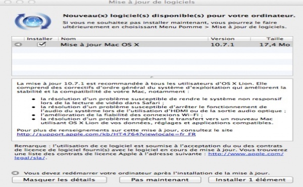 Mac OS X Lion 10.7.1 est disponible - 17/08/2011