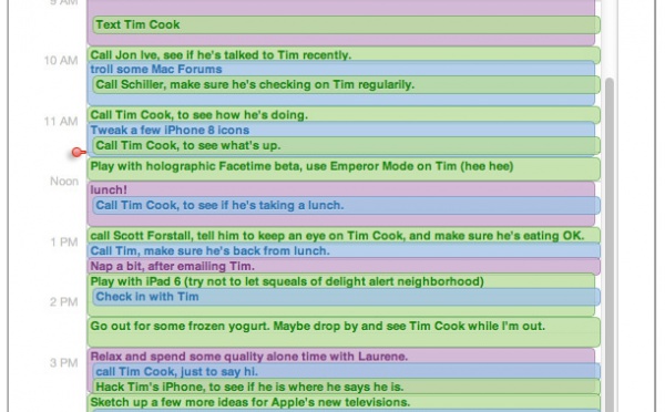 Après sa démission du poste de CEO, Steve Jobs va voir le rythme de sa vie chamboulé mais The Joy of Tech a réalisé son futur agenda avec une bonne dose d'humour reflétant le quotidien d'iPapy. On peut voir que même si Steve n'est plus officiellement CEO il reste quelque part toujours à la tête de la firme américaine. Source
