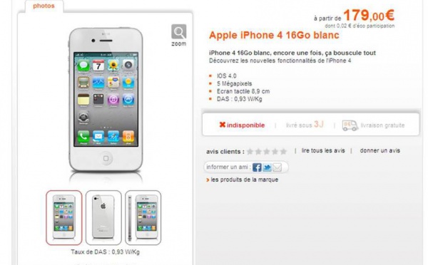 L'iPhone 4 blanc disponible dans des boutiques en France mais pas en ligne - 27/04/2011