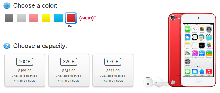L'autre changement notable est celui du prix mais qui cette fois-ci concerne toute la gamme des iPod Touch 5G. Ainsi, la version 16Go est proposée à 209€, la version 32Go à 259€ (329€ auparavant) et enfin, la version 64Go voit son prix passer de 449€ à 319€.