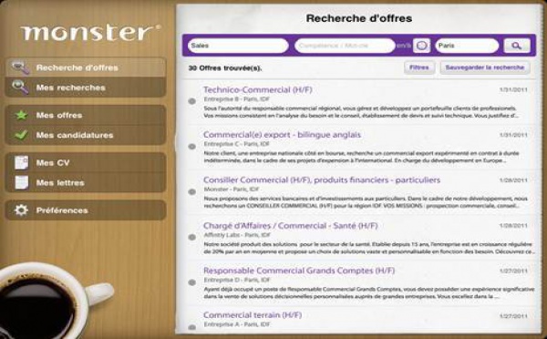 Monster.fr lance la première application iPad dédiée au recrutement ! - 18/04/2011