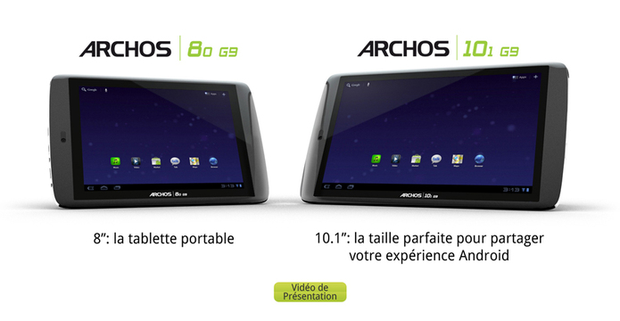 Pour ce qui est de leurs caractéristiques communes Archos nous annonce donc qu'elles tourneront sous Androïd (jusque là c'est logique) mais avec la version HoneyComb 3.1. Coté matériel il y aura un processeur à double palpitant OMAP4 1,5 GHz et avec la possibilité d'avoir jusqu'à 250 Go de mémoire.