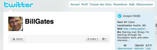 Au moment ou j'écris ces lignes, Bill Gates a écrit 3 tweet et Retweeté 2 fois et déjà plus de 125000 personnes se sont abonnés à son compte Twitter.