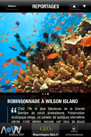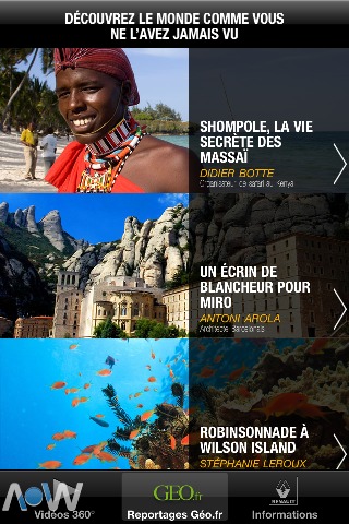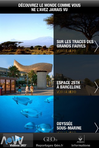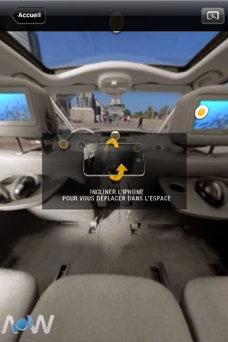 Le constructeur automobile Renault s'intéresse de près à nos smartphone et plus particulièrement à l'iPhone avec la sortie récente de l'application Renault Espace nous invitant à "découvrir le monde comme vous ne l’avez jamais vu". Cette application innove en proposant la découverte de plusieurs univers en 360° avec 10 destinations, elle permet de découvrir l'intérieur du nouvel Espace en utilisant le gyroscope de l'iPhone où si vous ne voulez pas vous tortiller dans tous les sens, vous pouvez désactiver cette fonctionnalité et utiliser vos doigts pour déplacer votre regard.