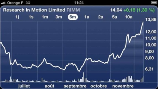 RIM fait beaucoup de communication autour de Blackberry 10, et quand on regarde l'action de RIM, qui avait touché le fond il y a quelques semaines, on peut s'apercevoir que beaucoup de monde, les économistes en premiers, doivent croire au retour de Blackberry sur le devant de la scène internationale en terme de mobile.