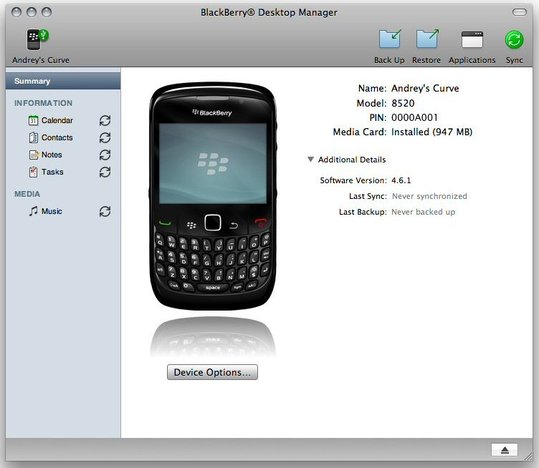 Blackberry Desktop Manager pour MAC intègre également Blackberry Media Sync qui permettra de synchroniser ses collections d'itTunes.