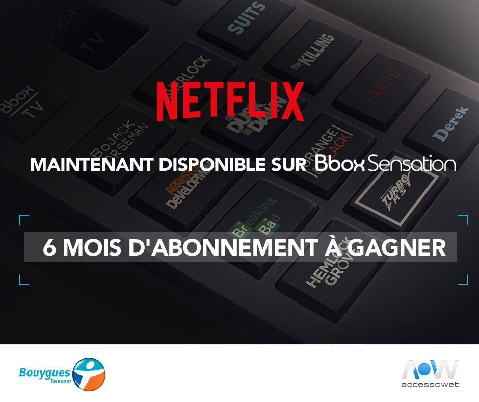 Bouygues Telecom ne pouvait pas manquer cette opportunité et propose depuis peu le service Netflix sur sa Bbox Sensation ADSL et Fibre.