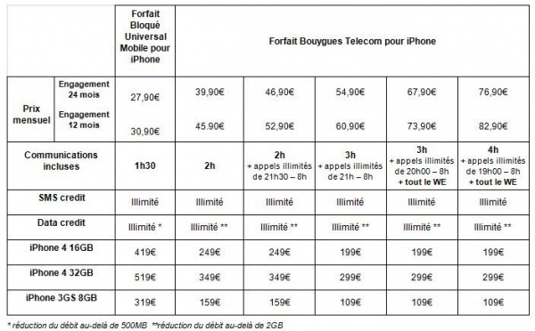 iPhone 4 - Tarifs et forfaits chez Bouygues Telecom - 23/06/2010