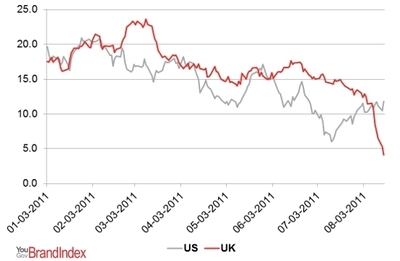 Or, d'après une nouvelle étude publiée par YouGov BrandIndex, il semblerait que la perception de Blackberry par les consommateurs continue à rester positive, du moins aux Etats-Unis. En effet, le buzz score de la marque aux USA est stable depuis plusieurs mois, oscillant entre 10 et 20, et augmentant même visiblement durant les émeutes (+6 points entre le 12 juillet et le 16 août).