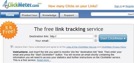 L'utilisation est très simple, vous vous rendez sur ClickMeter, vous entrez l'URL dont vous voulez avoir les stats, puis votre adresse mail. Vous recevrez un mail avec le lien à mettre en place sur votre site ( en échange du lien original ) ainsi qu'un accès à vos stats.